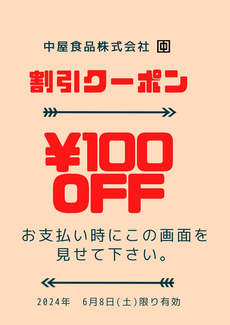 即売会のお知らせ【当日限定クーポン券】 中屋食品HOME お知らせ 2024.06.01 いつもお世話になっております。 6月8日(土)に京町本社で夏の即売会を開催いたします。 ・9:00~16:00まで 地域の皆様に日ごろの感謝を込めまして厳選商品を一日限りの特別価格でご奉仕させていただきます。 この機会にお買い得商品をぜひお求めください。 ※クーポン券は、ご会計時にご利用ください。 ※他のクーポンとの併用はできません。 詳細はこちらから 戻る