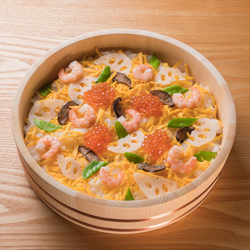 そのほかにもたくさんの具材が入っている事から「生涯食べ物に困らないように」という願いが込められていると言われています。 ひな祭りにはお子様の健やかな成長を願って華やかなちらし寿司でお楽しみください。